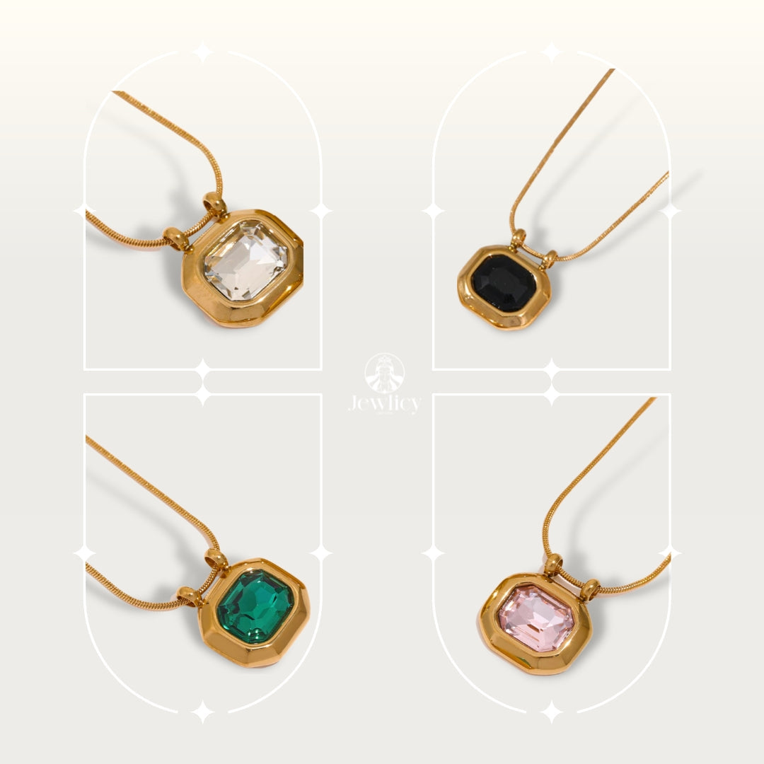 Introducing the Necklak Gift Box, a captivating ensemble featuring four necklaces with a consistent design, each adorned with a unique and enchanting stone. This extraordinary gift box offers a variety of stunning options to suit every mood and style. With its elegant design and meticulous craftsmanship, each necklace is a wearable work of art, showcasing the beauty and individuality of different gemstones. From the vibrant hues of amethyst to the shimmering sparkle of topaz, the Necklak Gift Box celebrates the allure of diverse stones. Elevate your accessory collection with this exceptional gift box, allowing you to effortlessly switch up your look and embrace the beauty of multiple gemstones in one enchanting set.